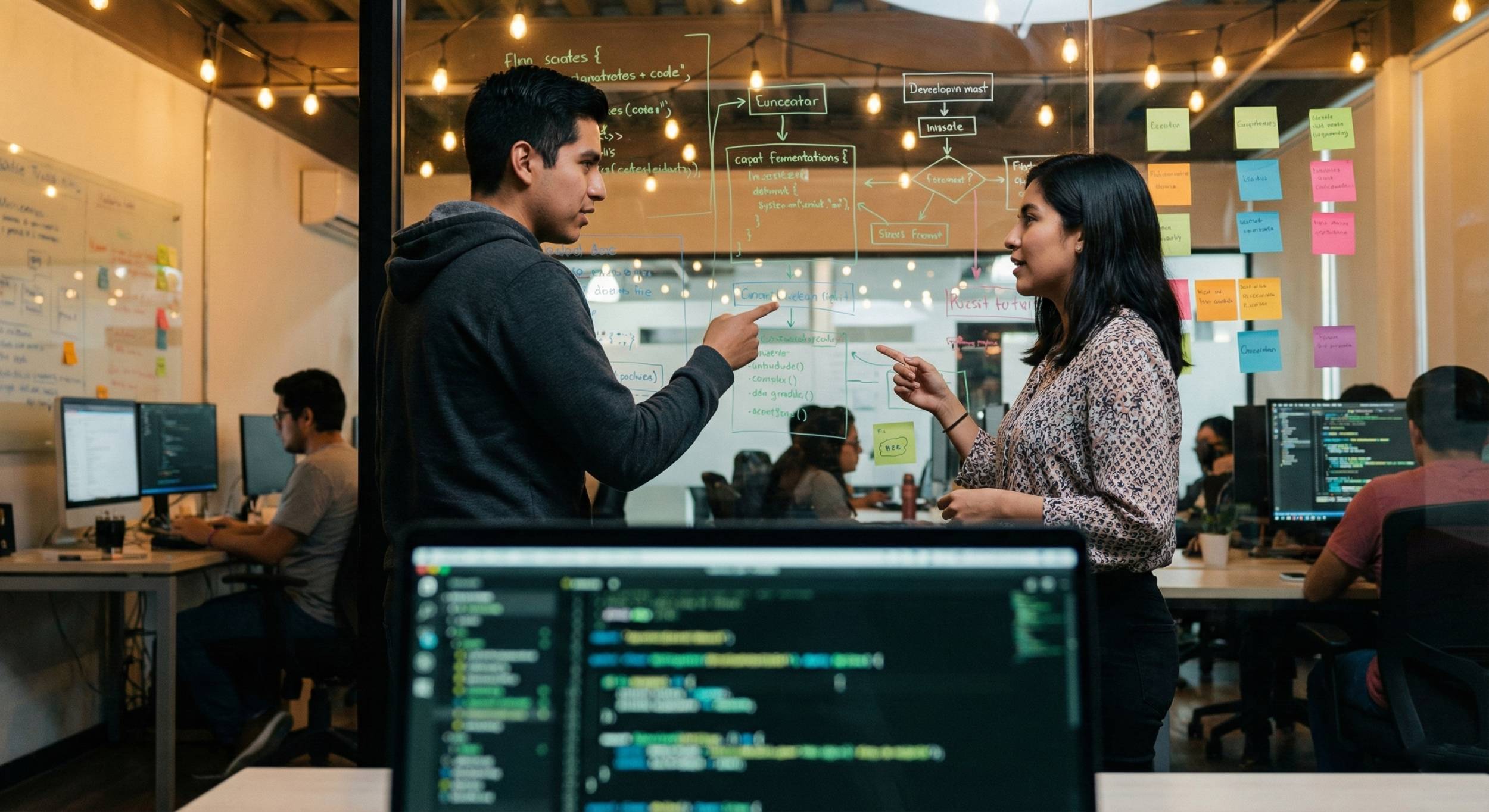 Si existe, lo implementamos. Si no existe, lo creamos. Nuestra Fábrica de Software transforma tus procesos manuales en herramientas digitales potentes. Desarrollamos aplicaciones y sistemas a medida que se adaptan a tus reglas de negocio, y no al revés.
